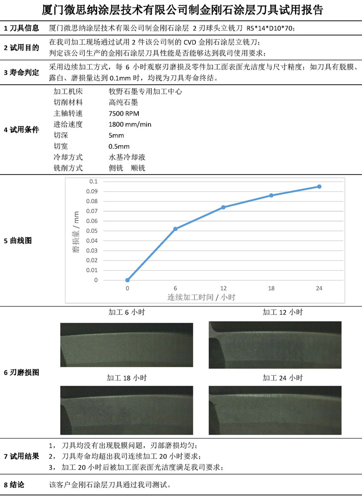 我司金刚石涂层刀具在青岛H公司试用报告